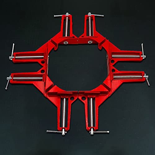 - §【Accuracy】: The accuracy of the corner clamps allows you to make and reinforce frames with precision featuring maximum clamping range of 3-inch. The swivel jaw can rotate the clamp to adjust work-pieces to different thickness. The reinforced connection and metal diagonal connection part of the angle clamps decrease the excessive pressure which can cause breaking.