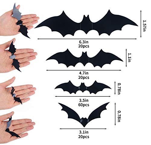 - Package:120 bats stickers in 4 sizes,enough adhesive tape 20 x big bats 16 x 4 cm, 20 x medium bats 12 x 3 cm, 20 x small bats 8 x 4 cm 60 x small bats 9 x 2 cm
