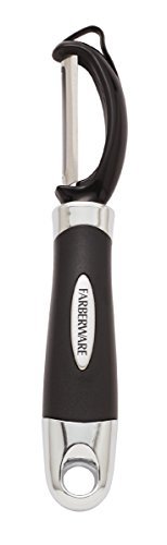 Details: This Farberware Euro Peeler easily peels your favorite fruits and vegetables. The Euro peeler features a sharp, swivel peeling blade. The peeler boasts an oversized ergonomic grip for added comfort and control. Durable, high carbon stainless steel construction resists rust for years of trouble-free use. The Euro peeler is completely dishwasher safe for easy cleanup. This product comes with a lifetime, limited warranty.