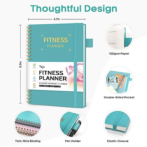 Fitness Workout Journal for Women & Men, A5(5.5″ x 8.2″) Workout Log Book Planner for Tracking, Progress, and Achieving Your Wellness Goals-Blue