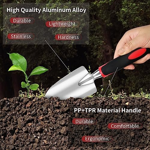 - 【Sturdy Stainless Steel Garden Set】- The ergonomic handle design of our garden tool set can provide a comfortable grip and reduce hand fatigue even during long gardening activities. The soft yet firm handle provides a secure grip and helps prevent slipping, helping you get your job done with ease.