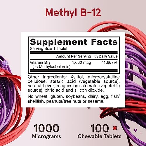 - Convenient Chewable Tablet – Each lemon-flavored chewable tablet delivers 1000 micrograms (mcg) of methyl B-12. Contains no wheat, gluten, soybeans, dairy, egg, fish/shellfish, or peanuts/tree nuts, or sesame.