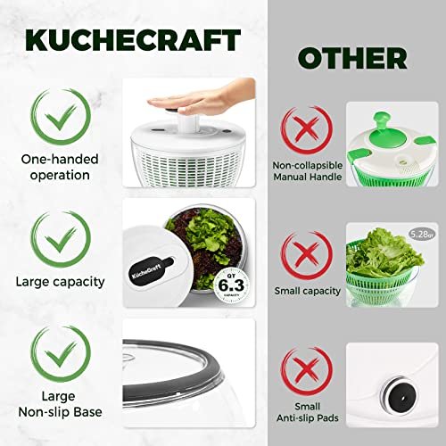 KucheCraft Salad Spinner Large 6.3 Qt, Manual Lettuce Spinner for Vegetable Prepping, One-Handed Pump Fruit Spinner Dryer with Bowl and Colander, Dishwasher Safe Veggie Fruit Washer Spinner-Black