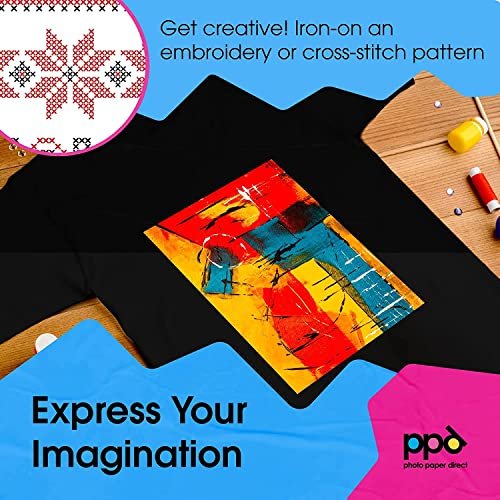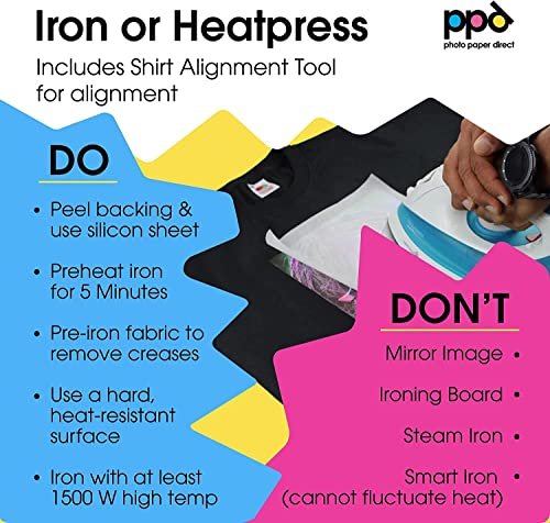Details: Commercial grade t-shirt transfer paper for black and dark color fabrics in 8.5X11″ by Photo Paper Direct ( PPD ). Create custom designs that can include text, images or the two combined. Transfer these designs onto a wide range of fabrics, textiles and clothing such as t-shirt, aprons, pillow cases, fabric labels, baby grows and others, limited only by your imagination. Application: Transfer customized design onto dark and black color fabrics. If you are looking to transfer onto white and light colors, we also carry these in our Amazon store If using an iron, use a solid, heat resistant, flat surface when applying heat (Solid Table, Work Top, Floor or similar – Ironing board CANNOT BE USED) When the transfer is exposed to heat (from an iron or heatpress), the design is released onto the fabric of choice You can peel the transfer when HOT or COLD Peeling hot will result in a matt finish, while peeling cold (room temperature) will result in gloss finish Compatibility: Printer and Ink – all Inkjet printers using every day normal inks Heat Transfer – use a domestic iron (1400w or higher) OR heat press machine (for commercial use) Fabric – can include a wide range of garments such as Cotton, Viscose, Polyester, Silk etc as long as they do not melt from heat In the Pack: Step-by-step printed transfer instructions including printer settings Reusable silicon sheet which helps make the transfer incredibly durable PPD t-shirt transfer paper x 10 sheets No experience needed. The pack comes with full instructions.