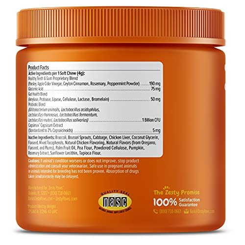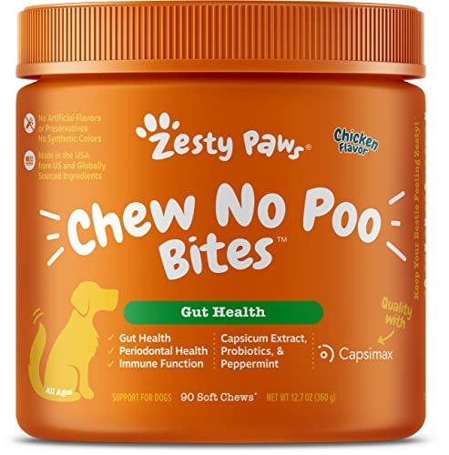 Zesty Paws Chew No Poo Bites – Coprophagia Stool Eating Deterrent for Dogs Deter Stop Dog from Eating Feces Probiotic Digestive Enzymes, Peppermint – Chicken Flavor, 90 Soft Chews
